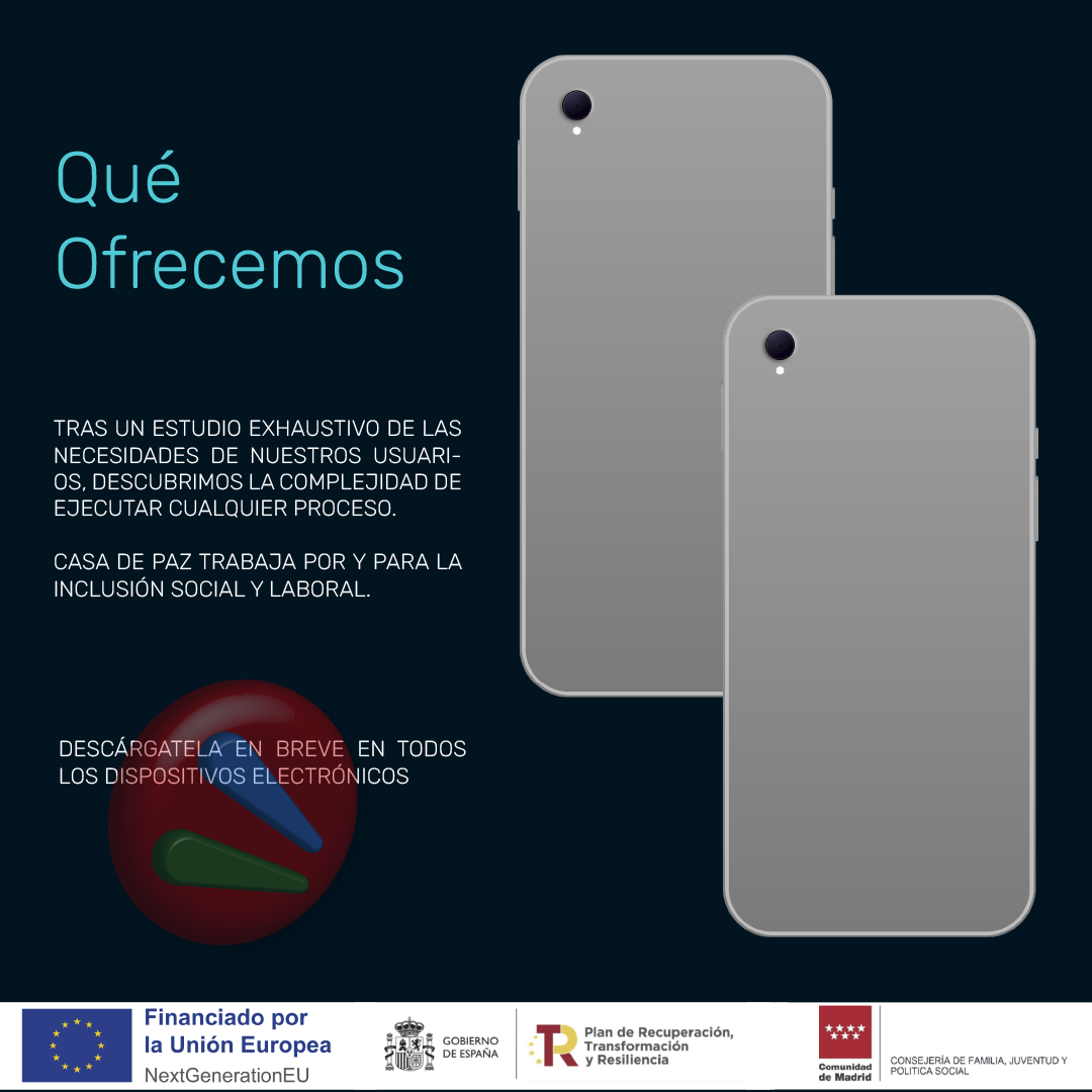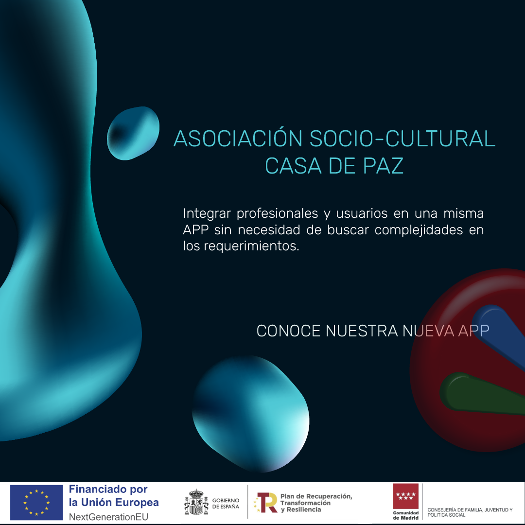 Una Aplicación que dará tranquilidad a nuestros usuarios reales y aproximará a todos aquellos que desean ser tratados por nuestros profesionales. Asociación Socio-Cultural Casa de Paz ha trabajado durante estos dos últimos años en desarrollar un programa de estrategia y tramitación único. Hoy es un hecho real ya en fase BETA de prueba gracias a la ayuda del programa NEXT GENERATION EU.